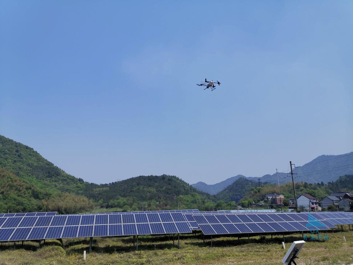 4月15日,浙江建德杨坞村,两架无人机分别升空,对晶科建德电站的光伏组件进行了全自主飞行的快速巡检测试。